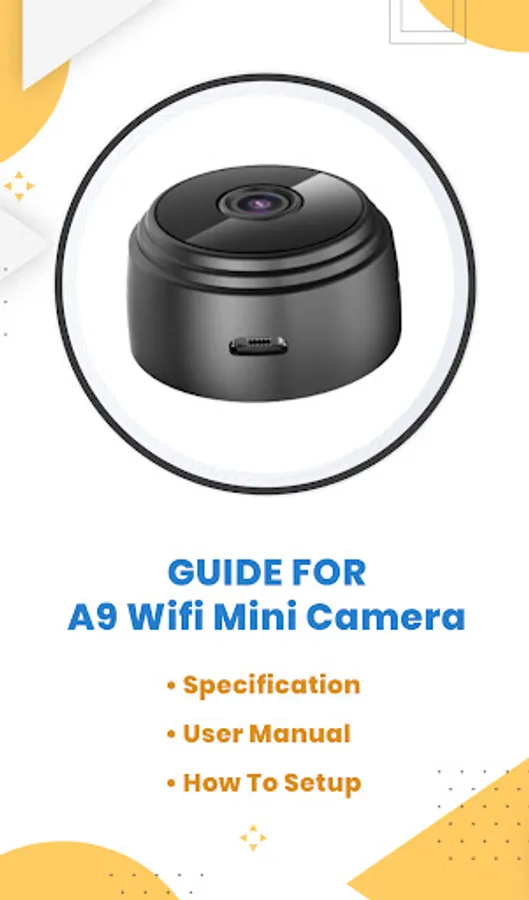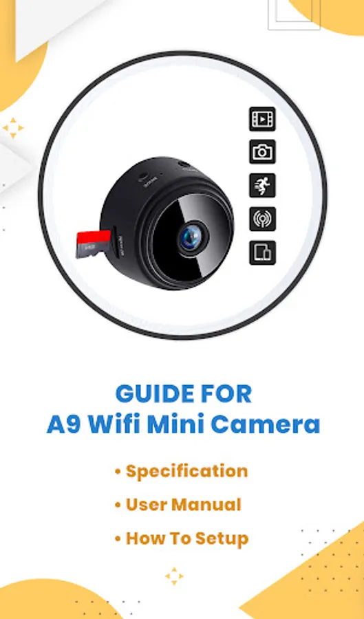 A9 Wifi Mini Camera HD Guide is app that contain all information about A9 Wifi Mini Camera, such as : specification, user manual, How to setup the device and much more.