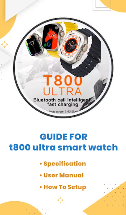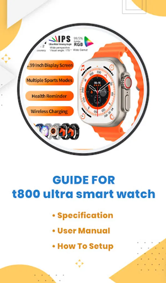 t800 ultra smart watch hint App is app that contain all information about t800 ultra smart watch, such as : specification, user manual, How to setup the device and much more.