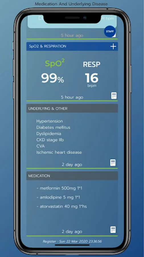 The patient provides of their own accord their health information, including drug allergies, list of current medication, and underlying health conditions for use in a medical emergency.