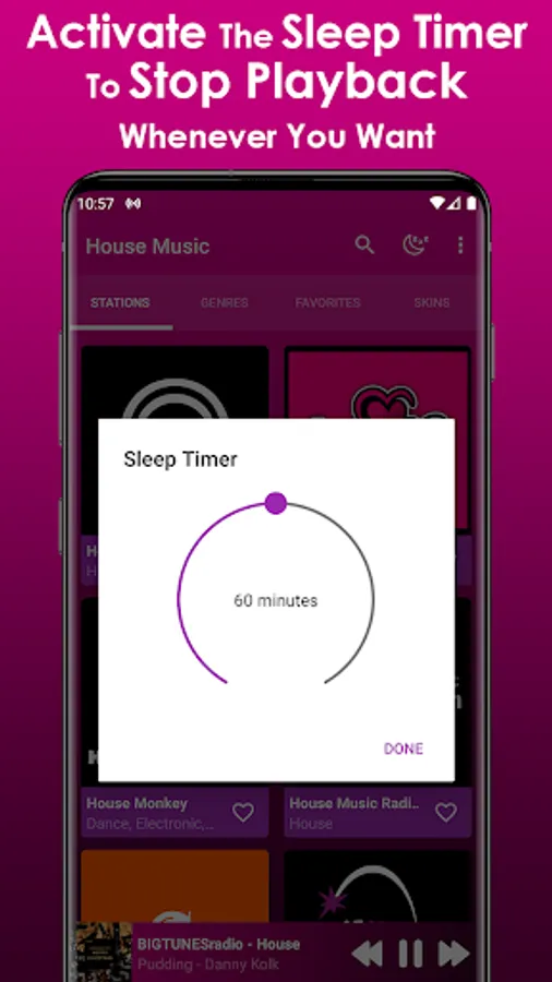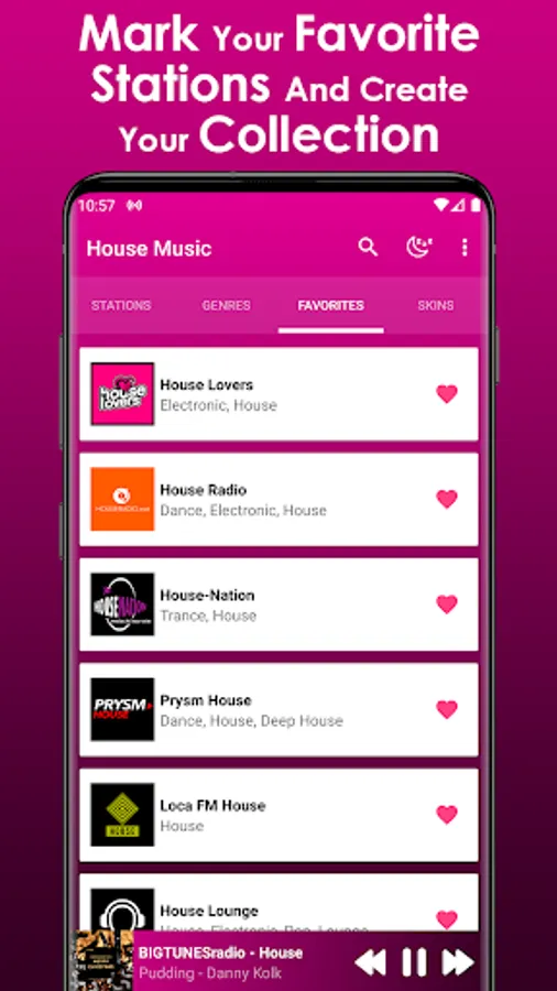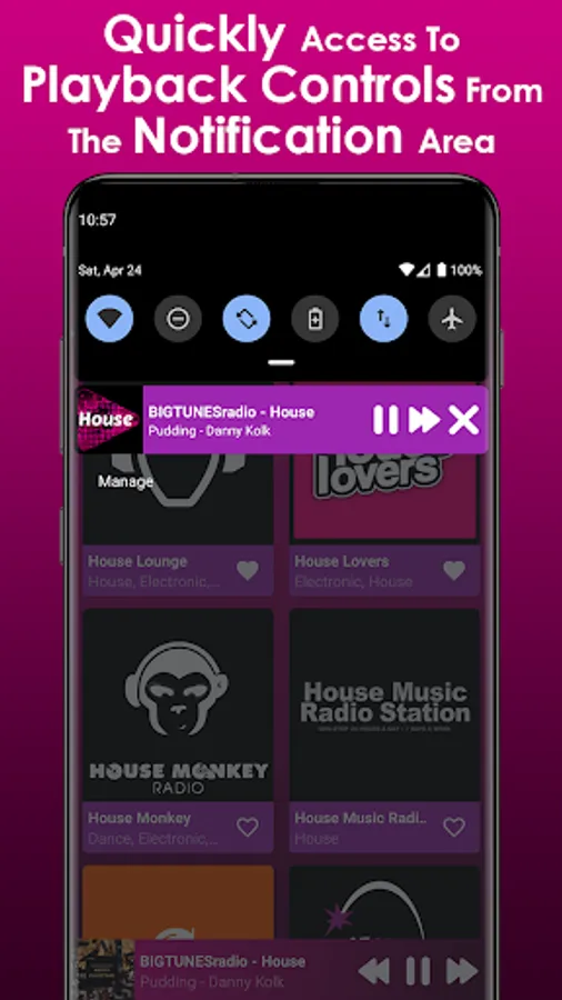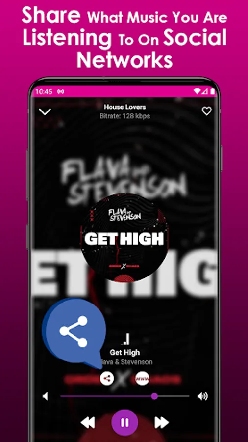 You don't need a downloader or apps to mp3 music downloads, you can enjoy the online House music radio player for android phone free with the best sounds of live music, the easiest way to listen without download mp3 files, to have fun at a karaoke singing or for guess the lyrics of your favorite song. You won't be able to listen music offline without internet or no wifi since it is needed to download the mp3 streaming. When tunes to the radio, it will be paused to play the ringtones when entering a call or when play notifications sounds.