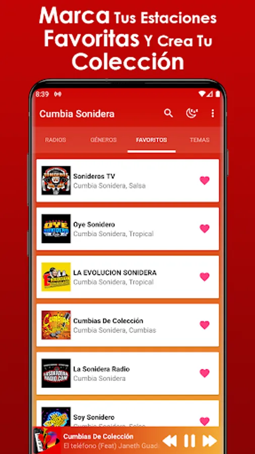 In this App you can enjoy the best cumbia sonidera music stations of the moment, electrocumbia and mix of cumbias sonideras, with the best hits of the new cumbia and the old classic for free.
