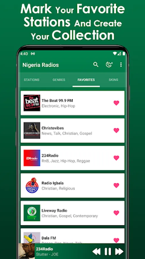 In this App you will be able to listen to the most popular online radio stations, in these radios you will listen to the most recent naija music, current Nigerian music, and in general a variety of musical genres, likewise you can listen to the Nigerian radio stations with the most followers around the world.