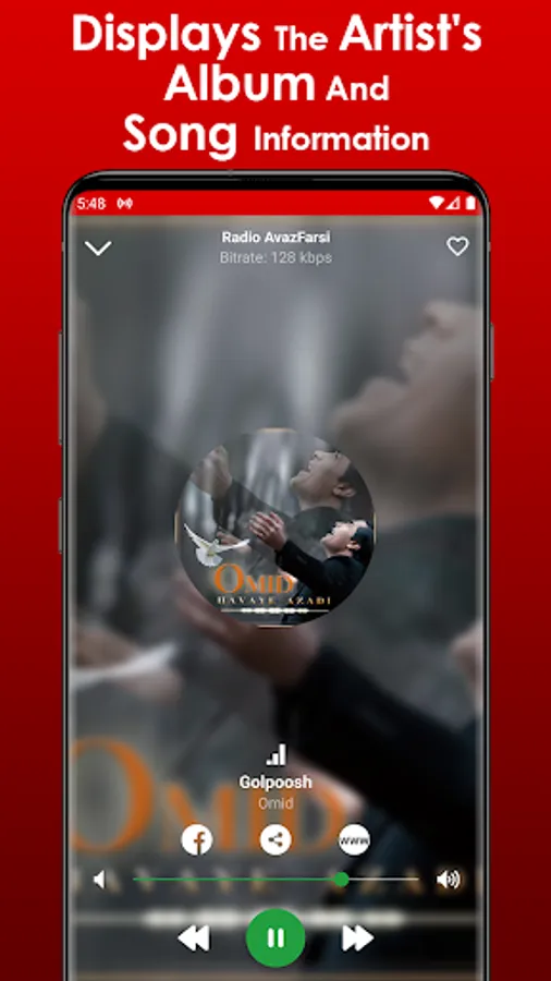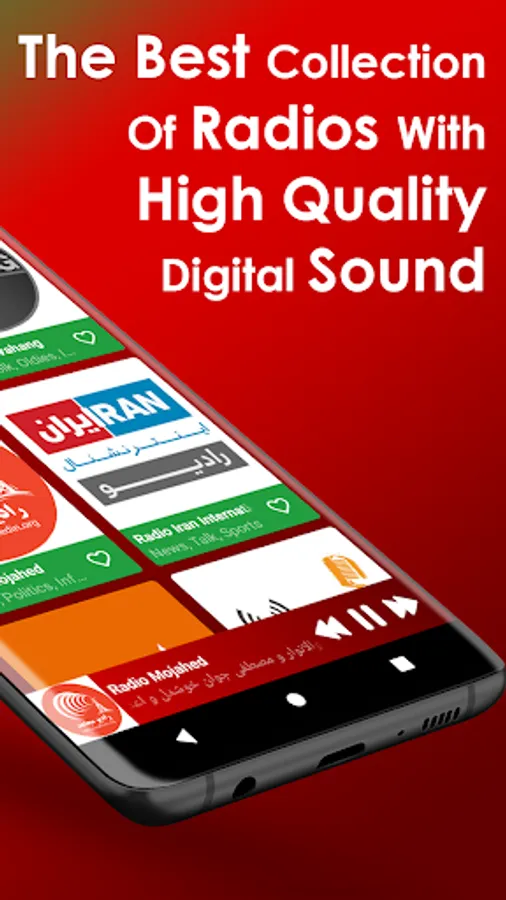 In this app you will find the best Persian radios online with the latest and most listened songs performed in the voices of the most famous male singers and listened to as: Ebi Hamedi, Arash Labaf, Andranik Madadian, Steve Naghavi, Aref Qazviní, Hossein Alizadeh, Arian Houshmand, Mohamad Motamedi. Among the female voices we highlight: Azam Ali, Googoosh, Shohreh Solati, Leila among many others. In the same way it is worth highlighting the Iranian groups Hamavayan, Shams and Pallett.