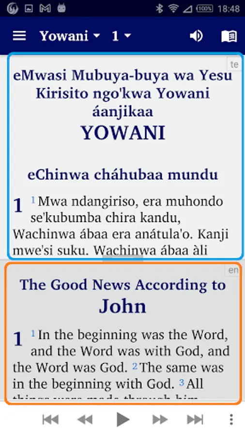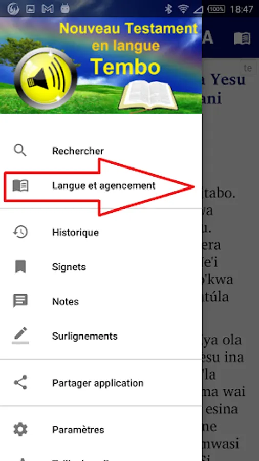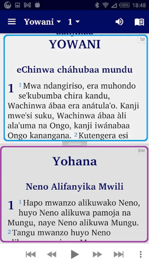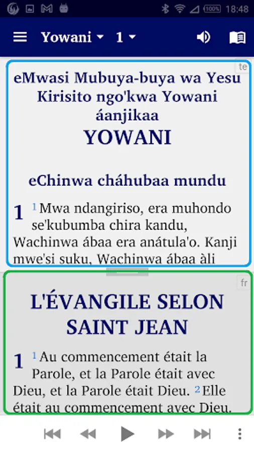 This application presents the New Testament translated into the Tembo language spoken in the Democratic Congo, North Kivu and South Kivu