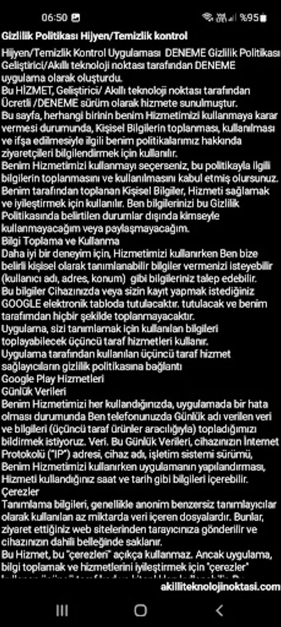 Hijyen/Temizlik Kontrol Uygulaması ;