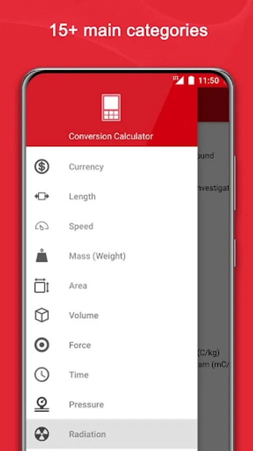 And many other categories full of units ready to be converted: Force, Time, Pressure, Radiation, Temperature, Fuel consumption, Power, Digital memory, Cooking, Angle, Radioactivity, Sound Power, Frequency