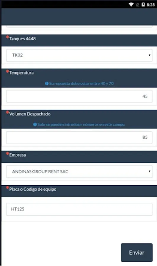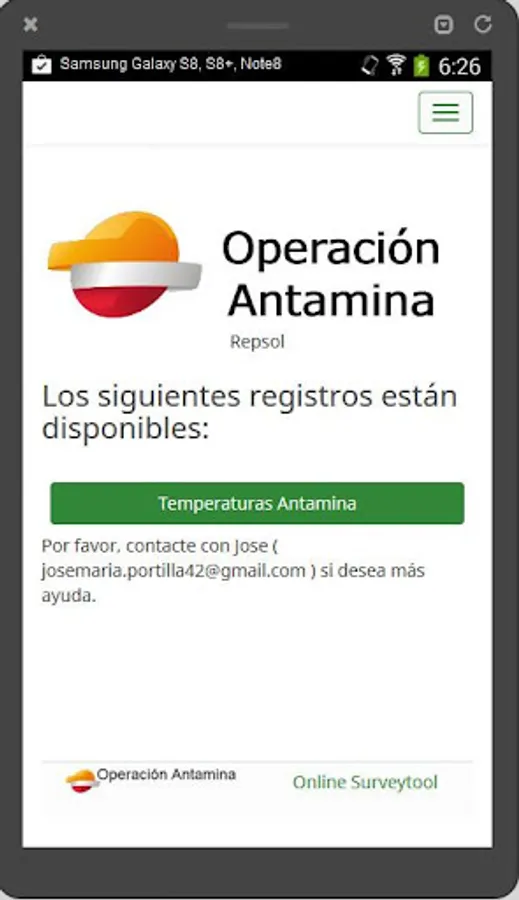 Private app for recording temperatures in the OP. Antamina.