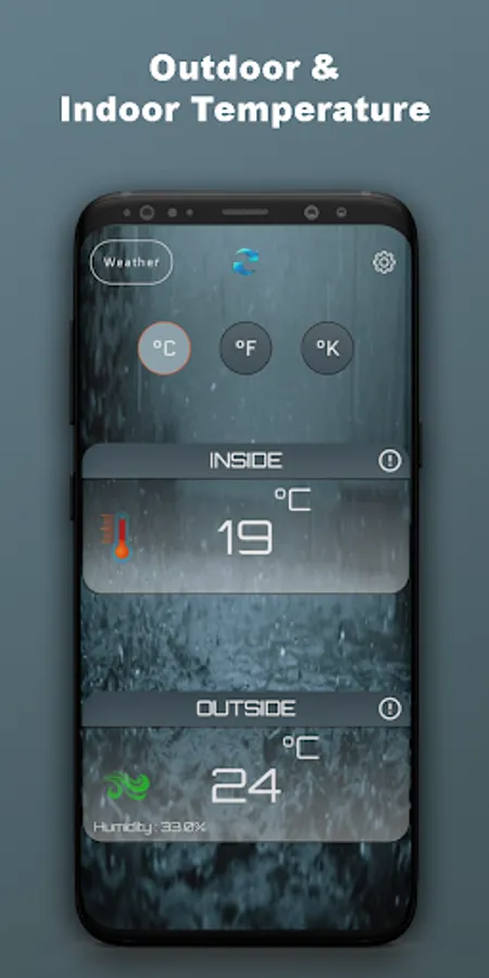 Room Temperature Thermometer and Meter Measure temperature unit type Celsius °C, Fahrenheit °F, and Kelvin °K. Measure outdoor room temperature and indoor temperature and humidity based on your location.