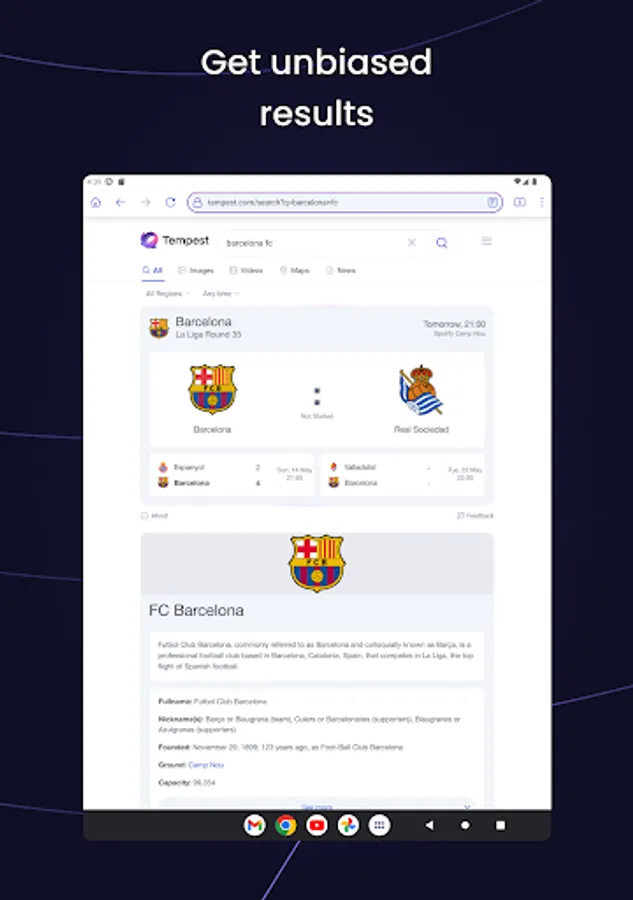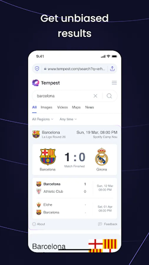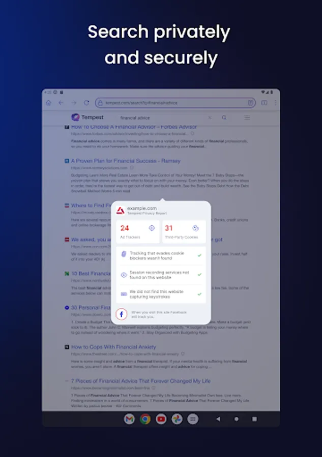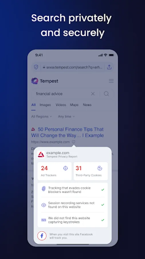 We integrate Tempest Search right into our browser. That means you automatically eliminate trackers and search history, ensuring you get the most private and relevant results the moment you go online.