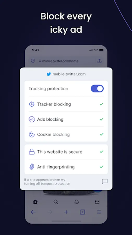Tempest is a fast, secure and private browser that puts you in control of your personal data online. With Tempest, you aren’t tracked, profiled, fingerprinted or followed by targeted ads when you’re navigating the Internet.