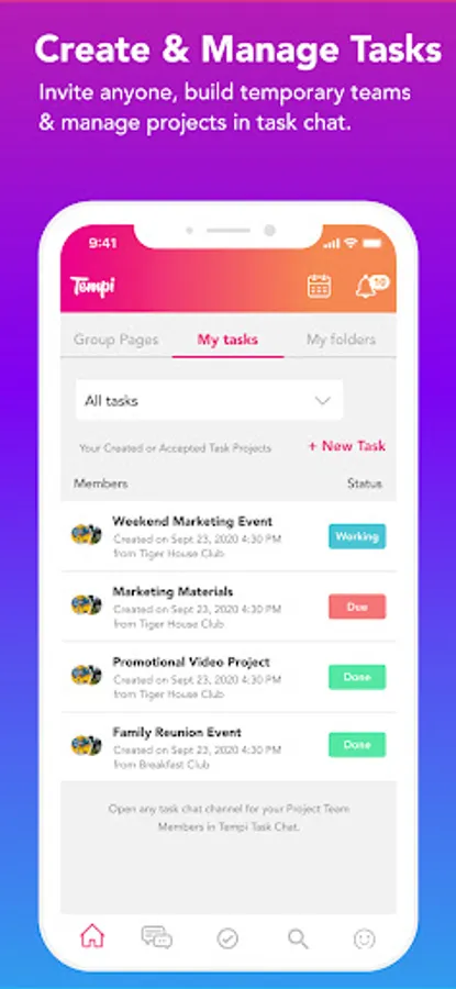 Tempi is sure to make your temporary team and community collaborations, task coordination and completion, file sharing and storage, communicating and freelancing easier.