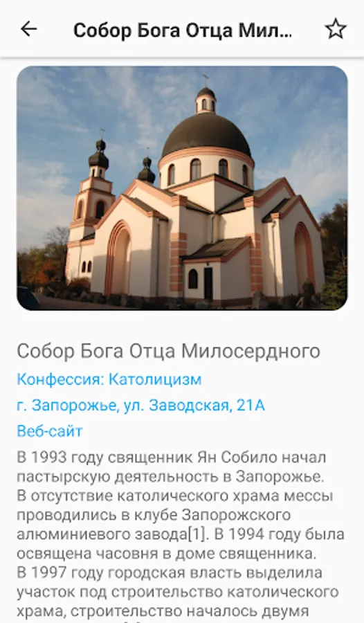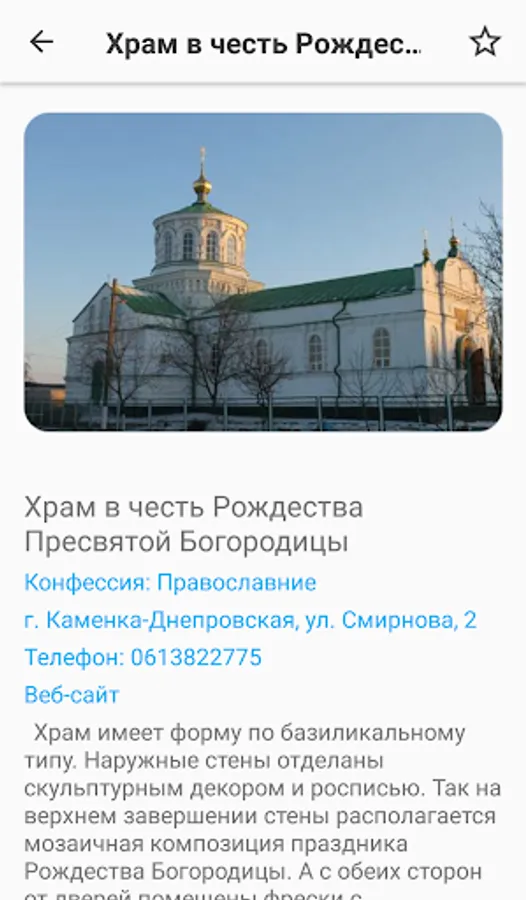 It contains information about the Orthodox, Catholic and Protestant churches in Ukraine. Easy sorting by region and denomination. Photos, description, address, phone. and further description of the beautiful but I can not write.