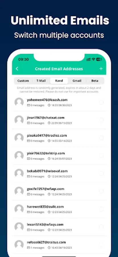 Inboxes - Multi Temp Email is a cutting-edge application specifically designed for creating virtual, temporary, and easily recoverable email addresses. The app excels in providing features such as temp email, temporary email, virtual email, and disposable email, allowing users to utilize email addresses for extended periods while maintaining the flexibility to restore and reuse them. Enjoy the convenience and privacy of using temporary and virtual email addresses for your long-term communication needs.