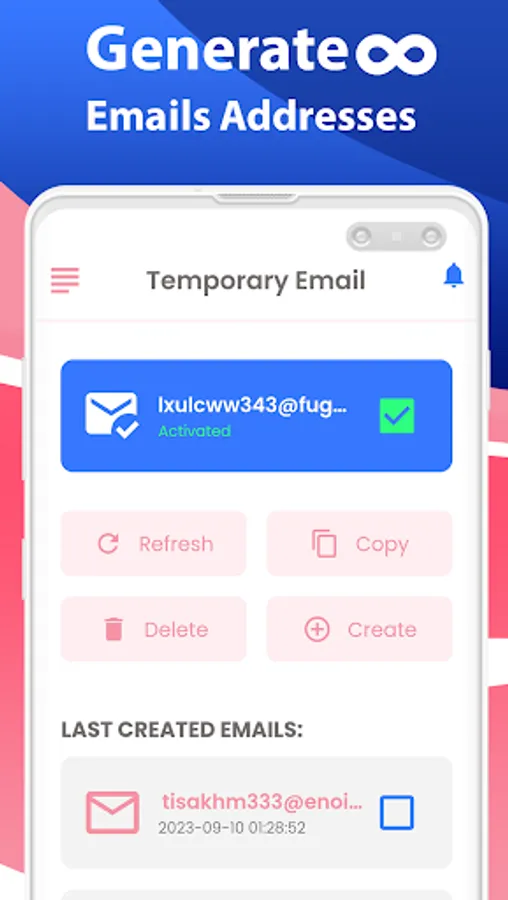 Have you looking for email apps for android to create a temporary email. We provide you a secure email client with an elegantly designed temp email generator app providing you an anonymous email Creating an experience with various email addresses. With this fake mail generator app, you can get an email instantly from anyone and use this temp mail address for contacting unknowns. It's a safe and secure email client replacement for your email providers.