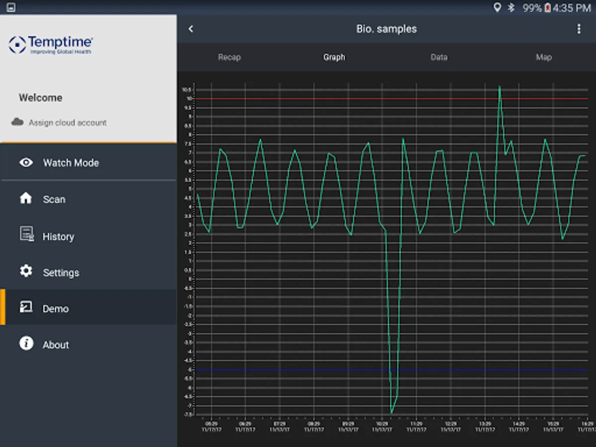 People in your cold-chain process can then use EDGEVue on an smartphone or tablet to view readings, graphs, alert status and more. You may also configure missions, store information in files and send reports. You may also share data with other people via the Cloud.