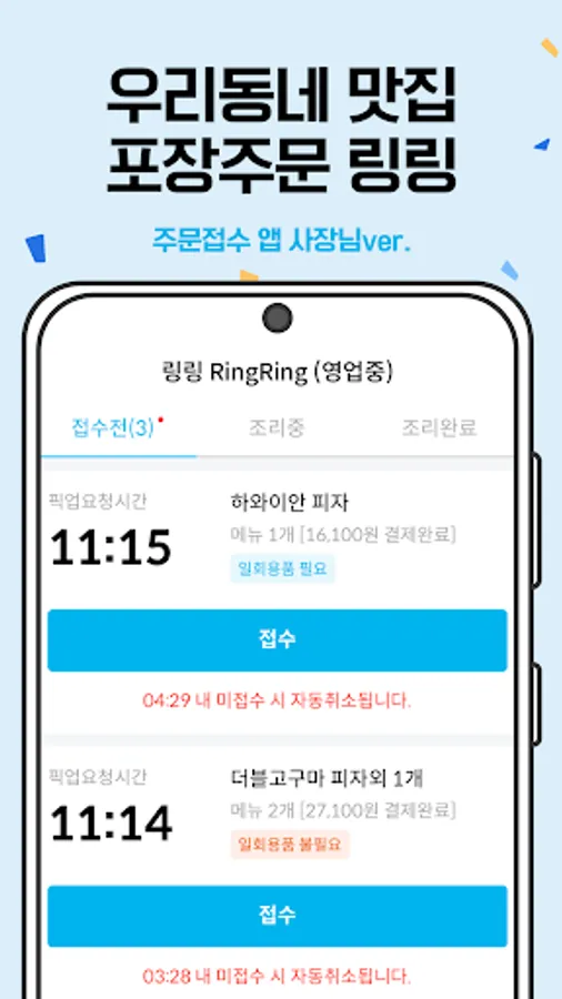 - During the set time, it will be displayed as ‘preparing for business’ and you will not be able to take orders. After the set time has elapsed, it automatically changes to ‘open’.