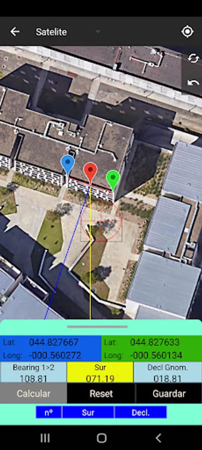 - Measurement on Google Maps of the gnomonic declination of a wall.