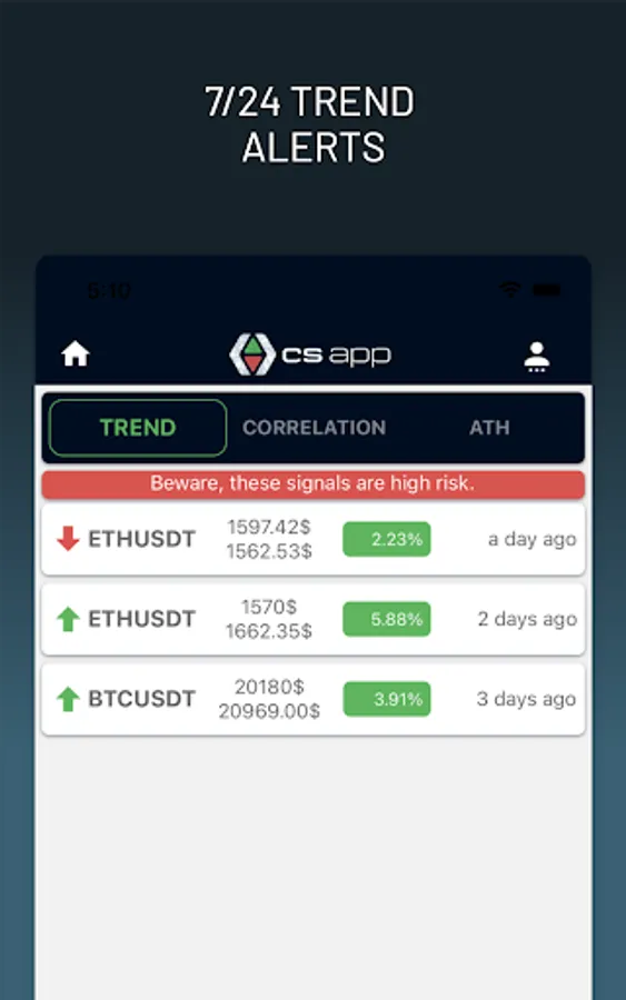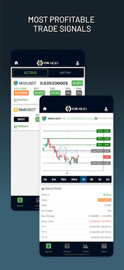 Whether you think investing swing trading, scalp trading or day trading; your investments will be more profitable with this free crypto signal application.