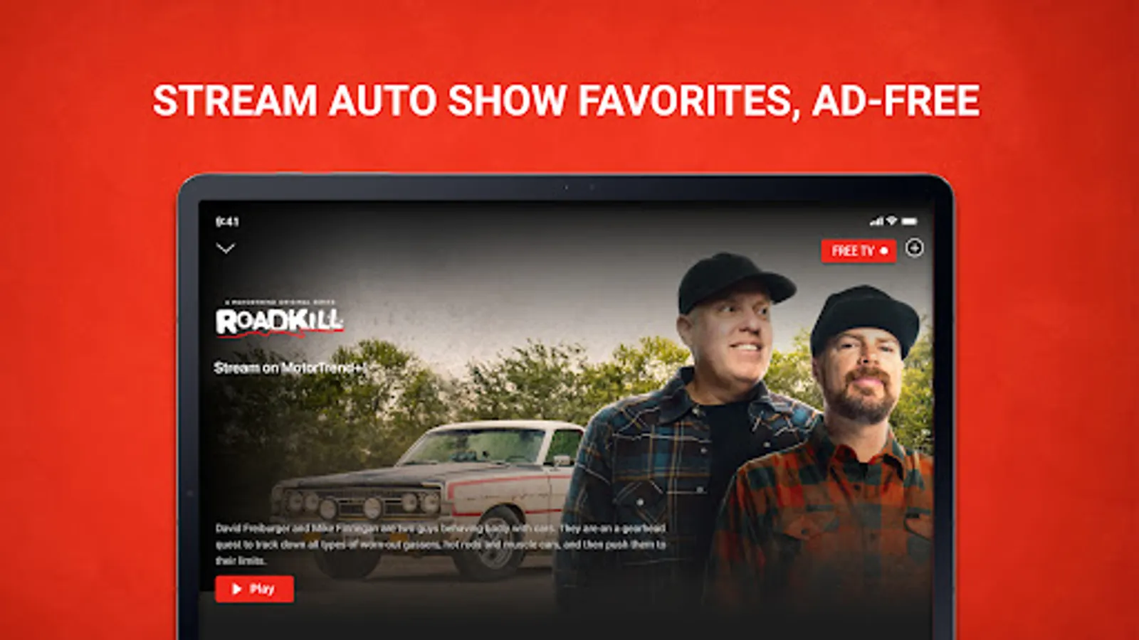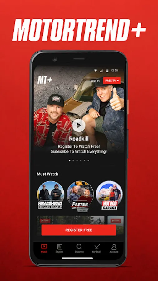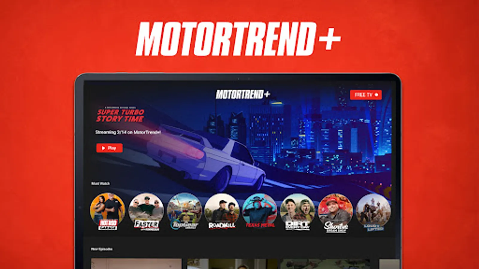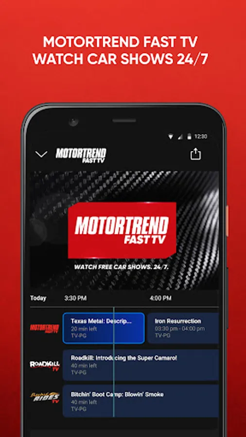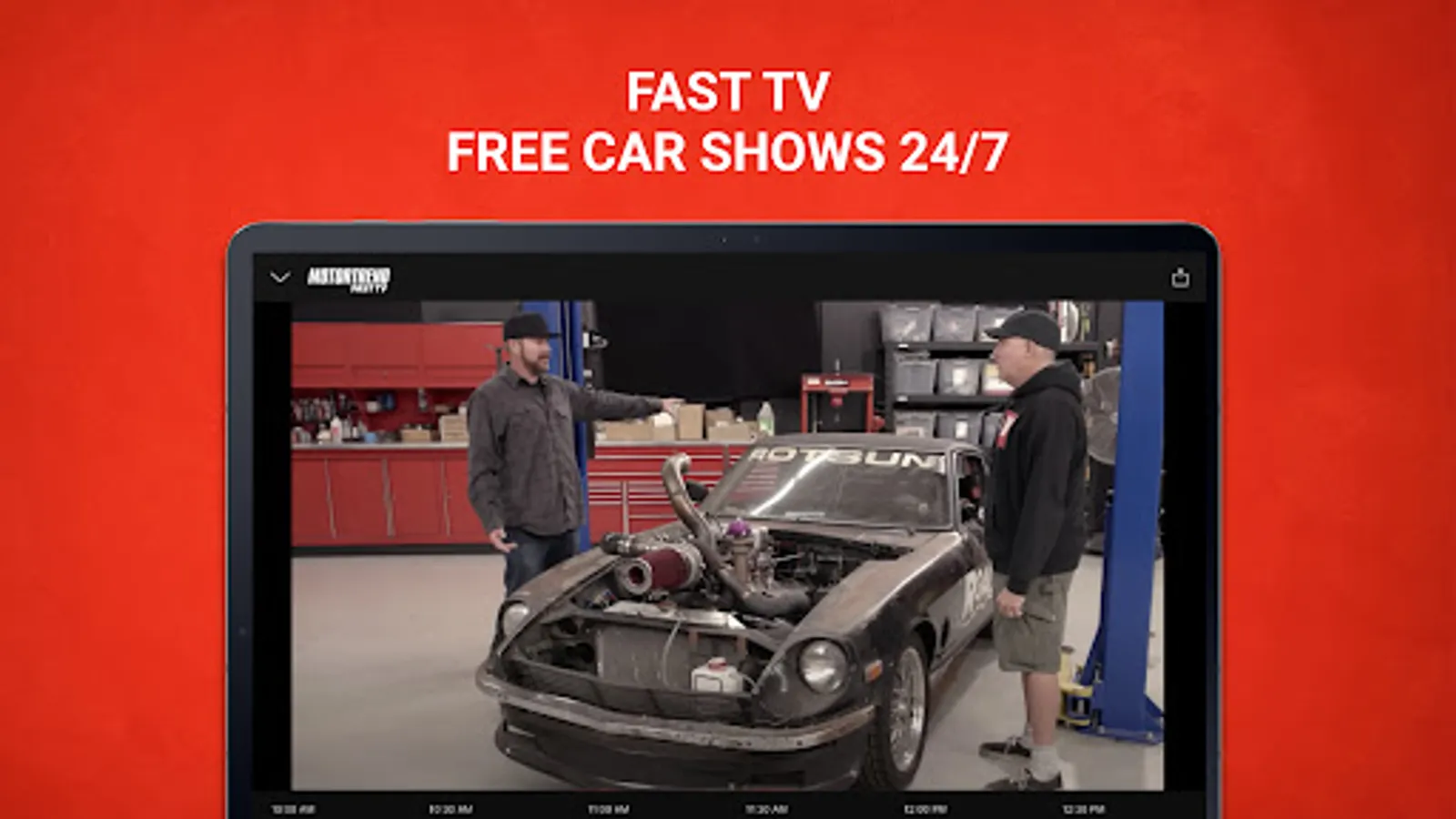 Unlock the world of Car Enthusiasm with FREE MotorTrend FAST TV. Stream free car shows 24/7 directly in the app. Watch Roadkill, HOT ROD Garage and more or subscribe to get access to thousands of hours of content on demand. Don’t miss out on our other FREE channels; MotorTrend Roadkill TV, and MotorTrend Bitchin’ Rides TV!