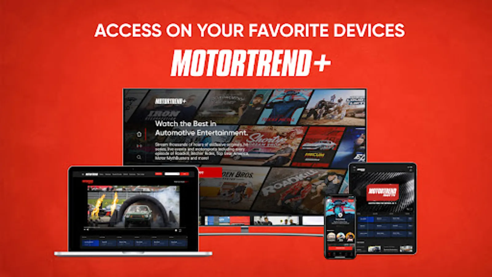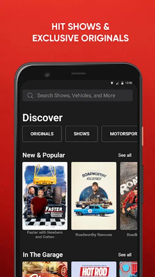 Dirt, street or track – stream the car shows that drive you. Stream thousands of hours of exclusive originals, hit series, live events, motorsports and more, across multiple devices and without a cable subscription.