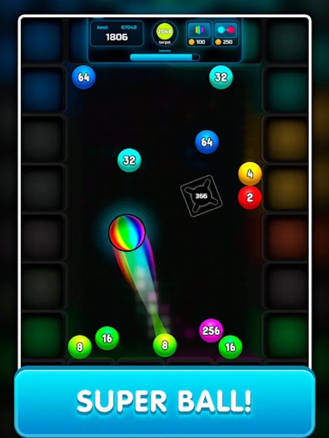 ☝️ Connect balls with the same numerical value and get one ball with 2 more numbers