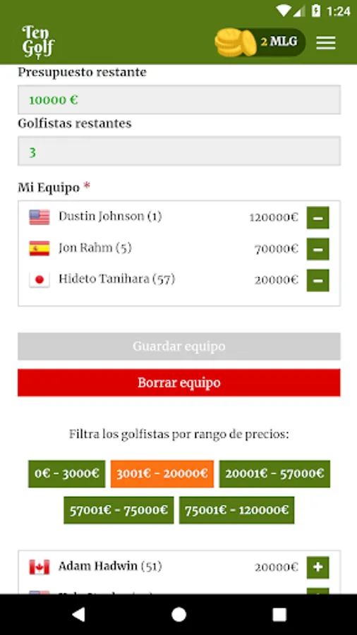 If you want a little extra help in World Ranking you will see the ranking of players you can choose for your team and News the most important data to consider each day.