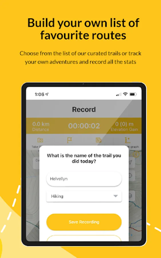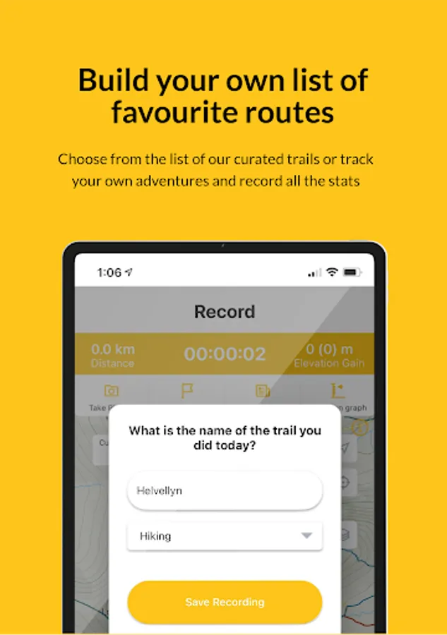 - Record your trail stats: Track your hikes, cycling routes, backpacking adventures and more using the record feature.