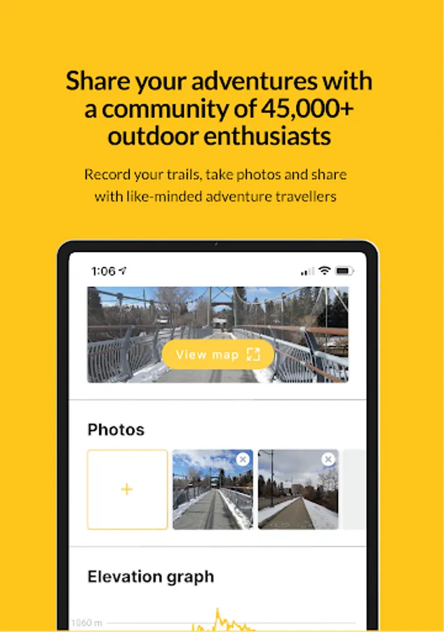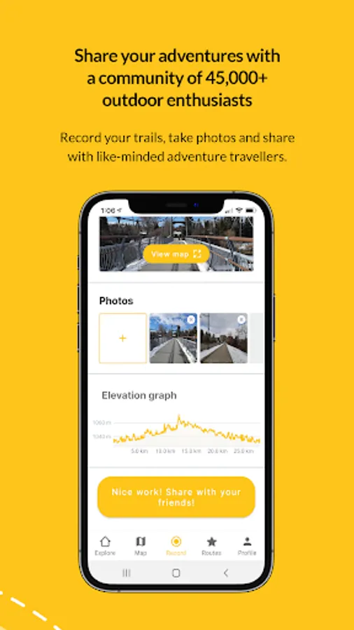 - Record your adventures and share with the community: Connect with like-minded outdoor enthusiasts around the world, share your adventures, and meet up with nearby explorers.