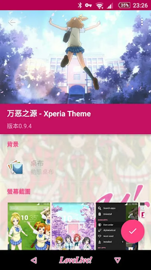 "Root of all evil" is a special model Xperia theme, taken from LoveLive! High quality original painting, for Sony Xperia smartphones (Android version 5.0 above).
