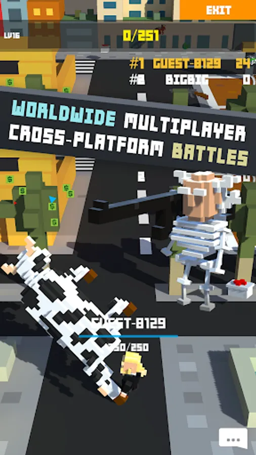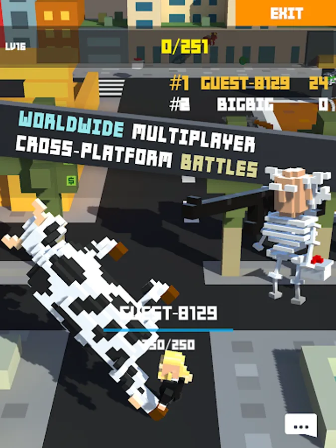 • Dynamic battles with lots of weapons (shotguns and chickens included)