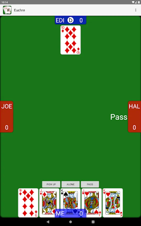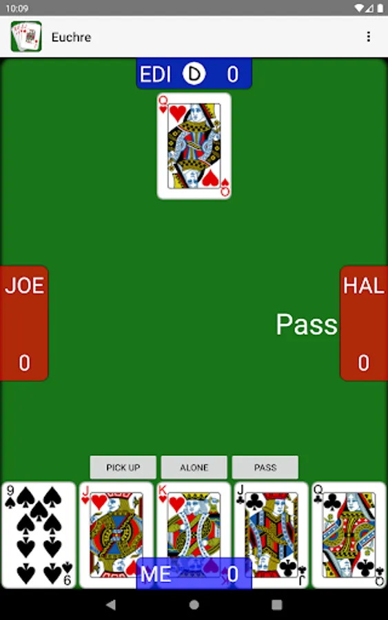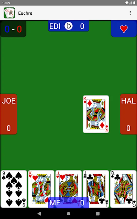 - Detailed description of how to play Euchre and tips that popup during the game to help players learn the game