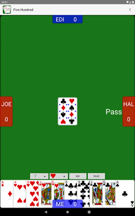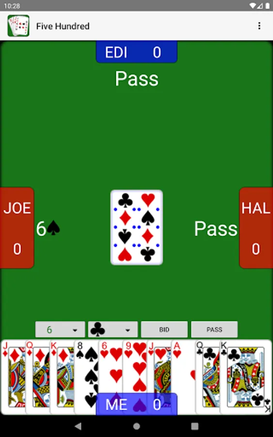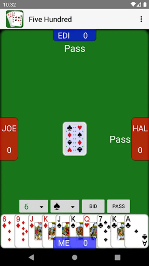 - Unique "House Rules" options: Game Score, Nullo only available after 7, Mention 6 Bids, One Round of Bidding, and Widow Size