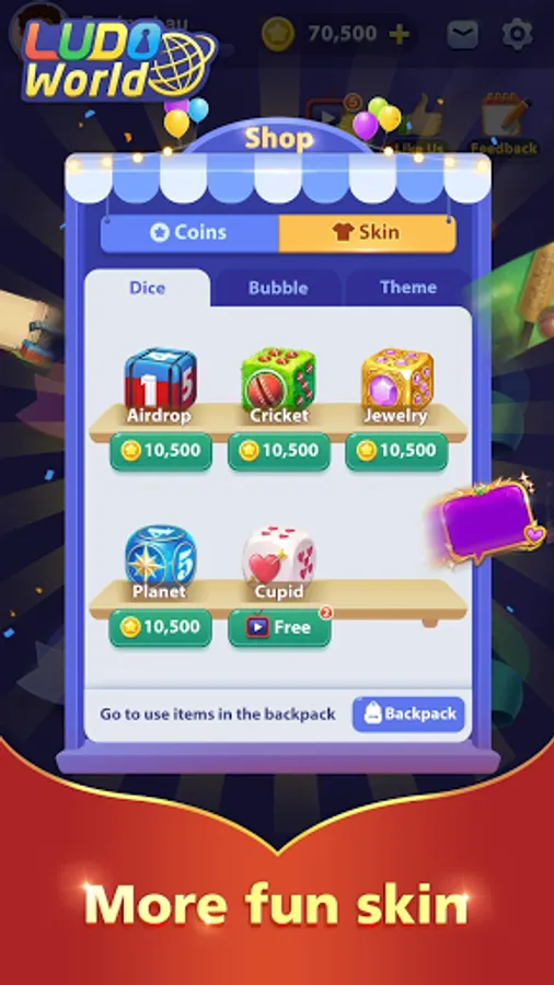 Besides Classic game mode of Ludo/Parcheesi, Ludo World's unique game mode, Power Mode, will bring you more fun by playing with friends and family!