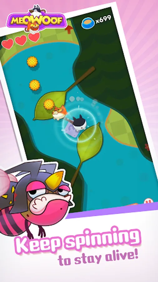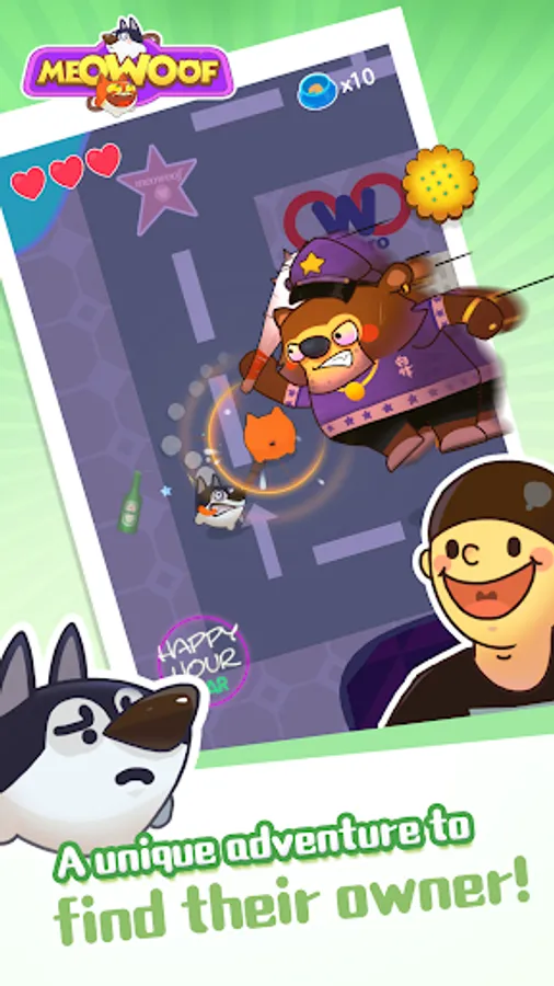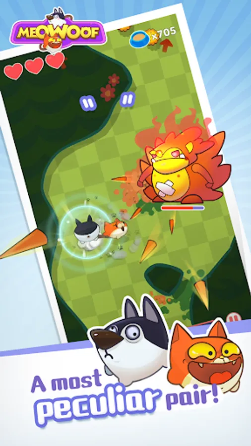 Meowoof is a quirky 2D action game. Player must control a cat and a dog at the same time, and defeat enemies while spinning and finding their owner!