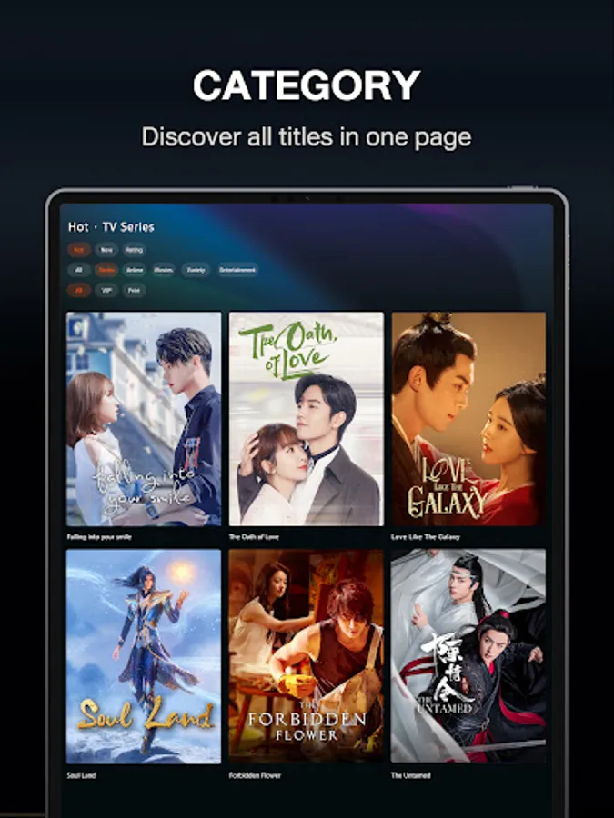 Category selection: Movies, dramas, and variety shows are categorized into different pages. We make it easier for you to find a specific category that you want to explore more.