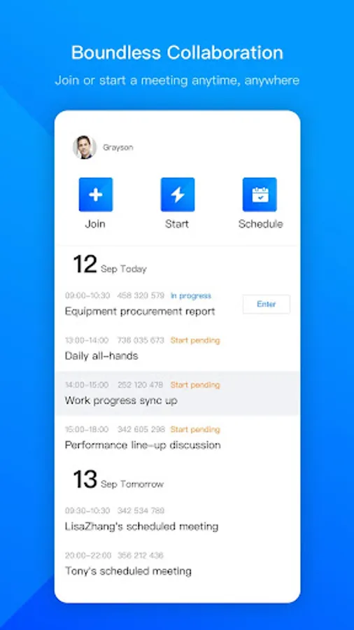 - Easily join, start, and schedule a meeting in just a few clicks across devices