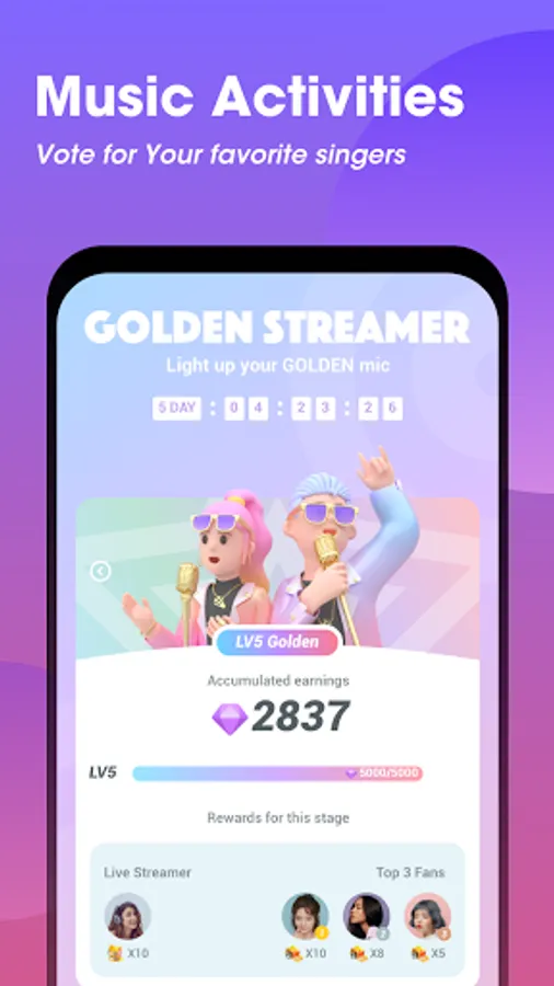 - Join the various music activities to show off yourself or support your favorite singer(s).