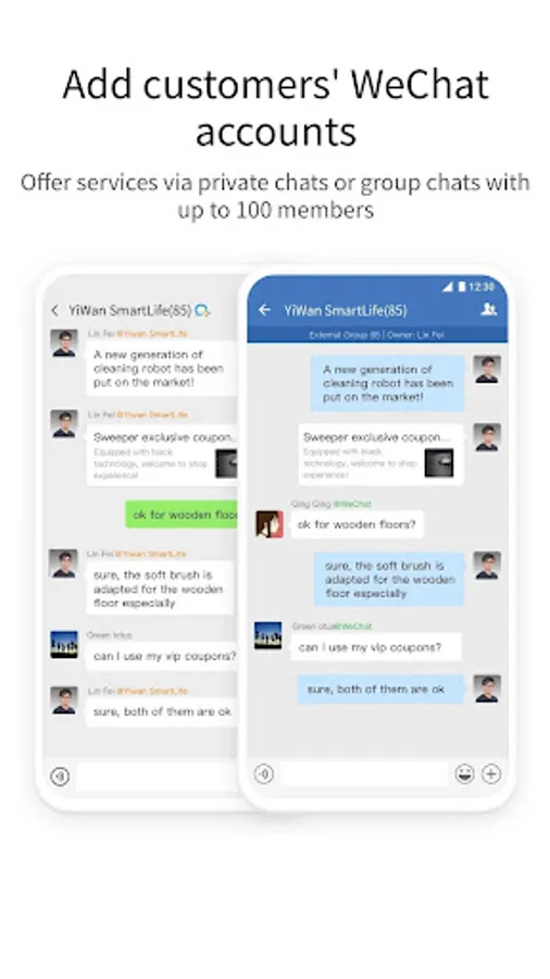 [Exchange Messages] Add WeChat users as contacts and offer services via private or group chats.