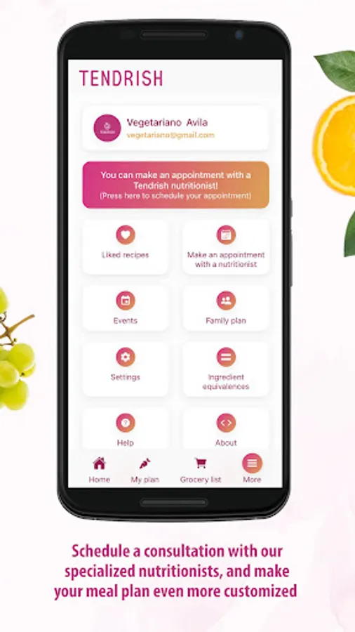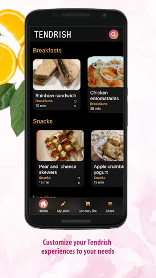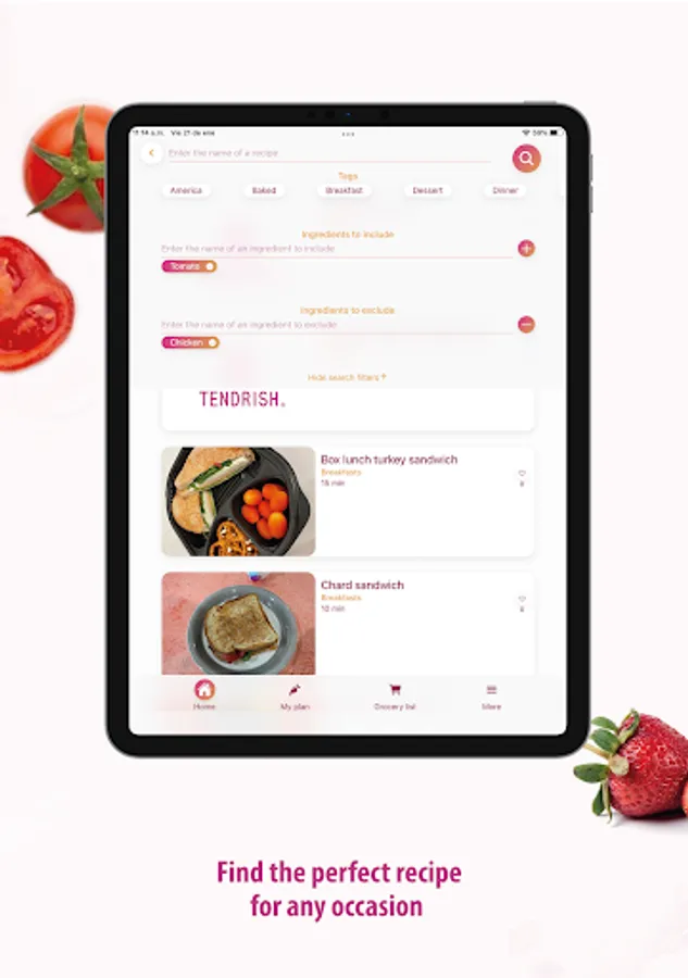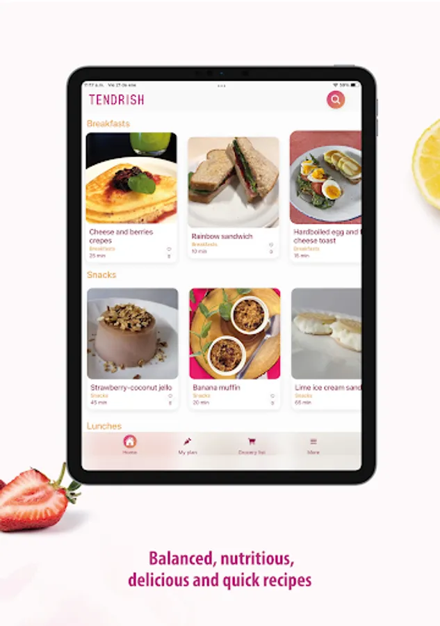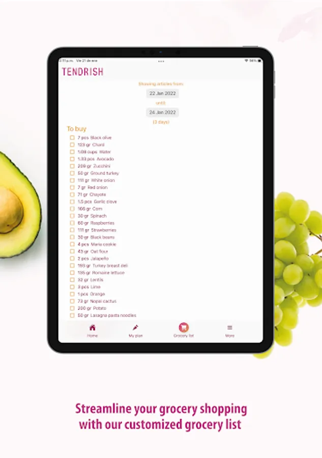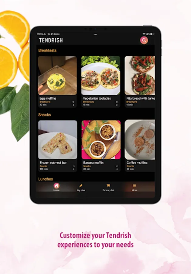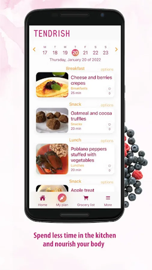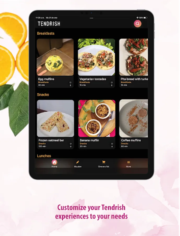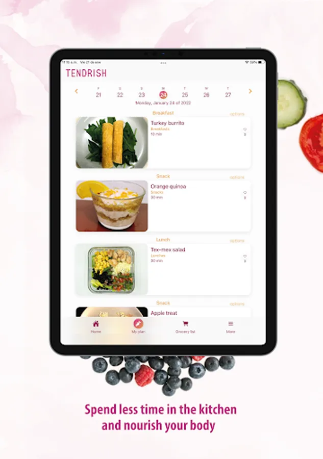 The Tendrish application is the planning tool that helps you nourish your body in an intuitive, flexible and personalized way. It's designed in an easy and practical way, to spend the least time on meal prep for the week.