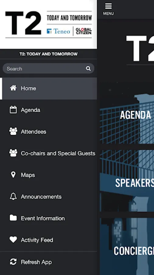 Teneo and Global Citizen T2 Today and Tomorrow Inaugural CEO Summit Event Application. This app will allow you to view your agenda for the day, network with others at the event, request concierge services and receive important notifications about the event.