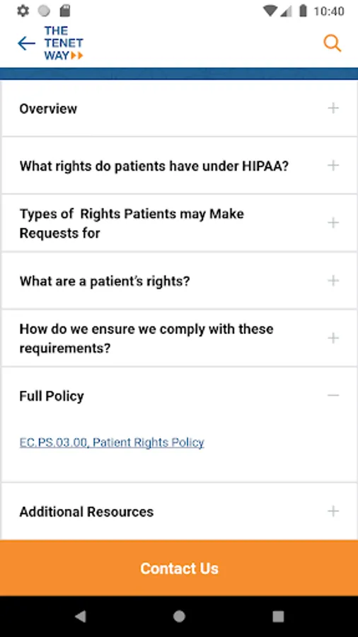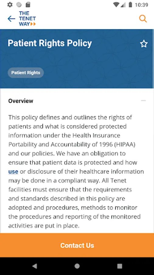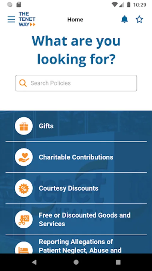 The Tenet Way, a compliance application designed for Tenet Health employees, places information and resources at employee fingertips. This new innovative resource tool contains Corporate Policies and Procedures summarized into lay language utilizing bullet point structure and decision trees.