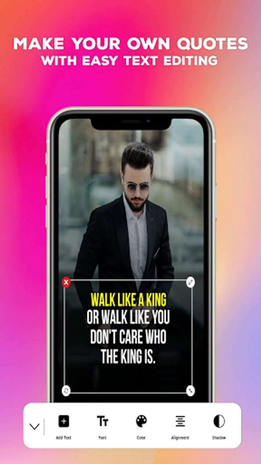 * Share your own thoughts or words with picture of high quality to Instagram, Facebook, WhatsApp, etc.
