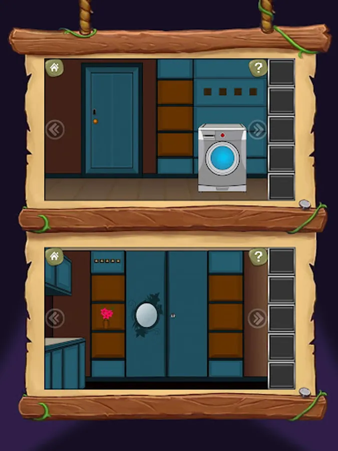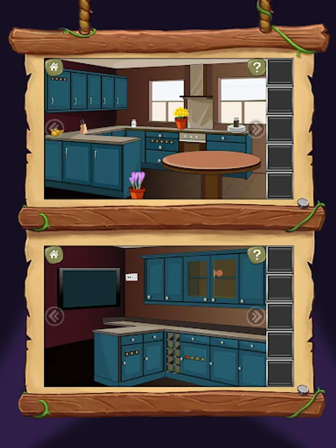 You woke up in a kitchen of a blue room, There was noisy footsteps outside the door, what happened? You have to hurry out of this room to find out.