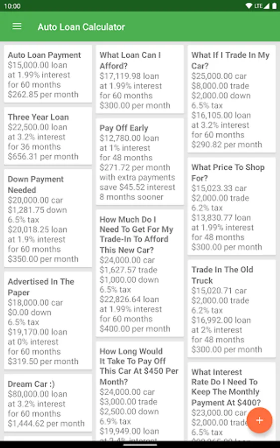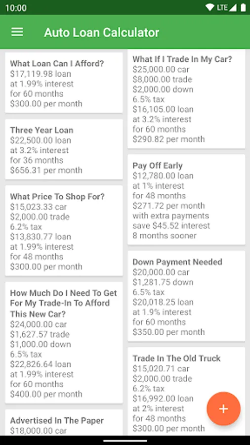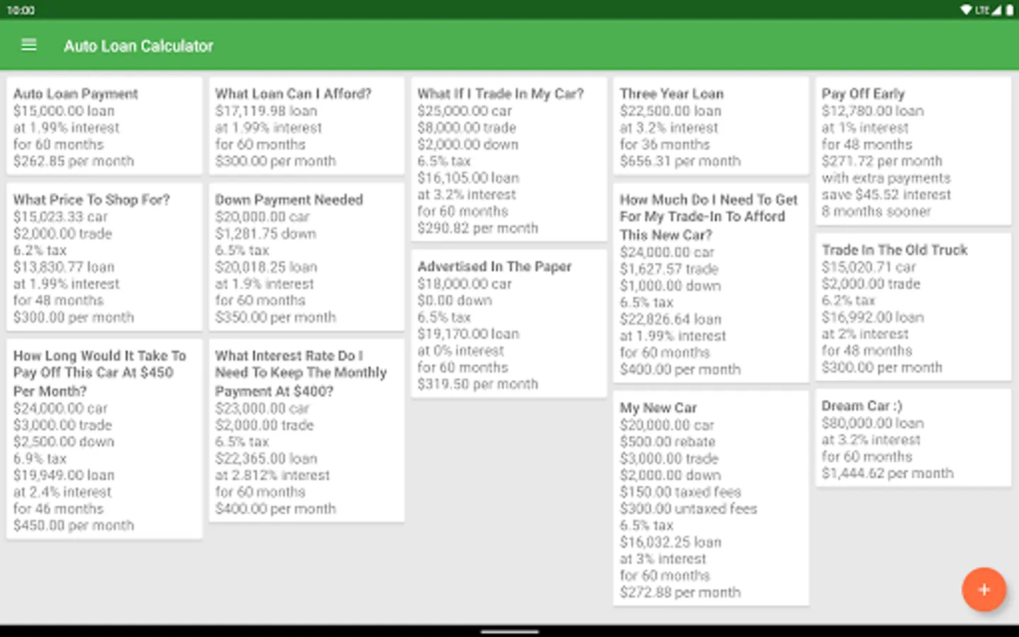 CARD VIEW: View and compare saved loan calculations at a glance in the card layout.