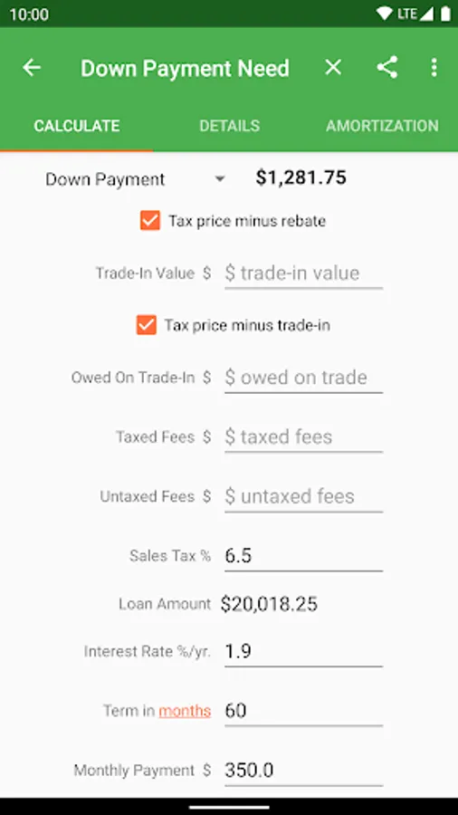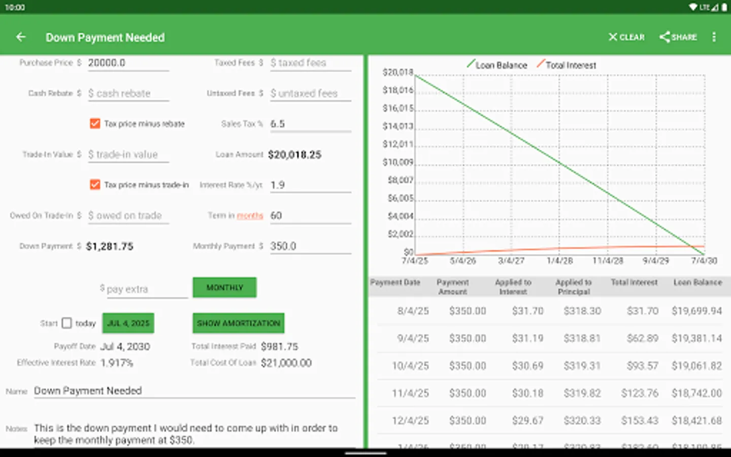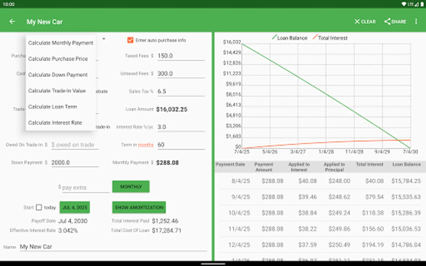 TABLETS AND PHONES: Optimized layouts for different sizes of tablets and phones. See all loan calculation details on one page on tablets. Swipe between logically grouped tabs on phones.