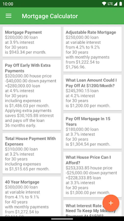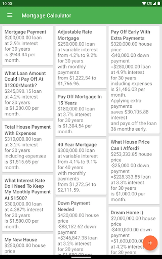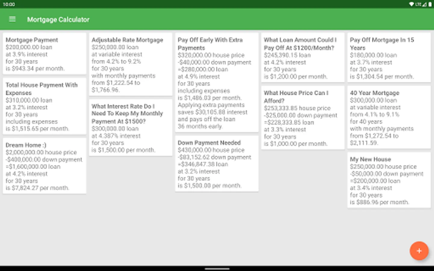 CARD VIEW: View and compare saved loan calculations at a glance in the card layout.