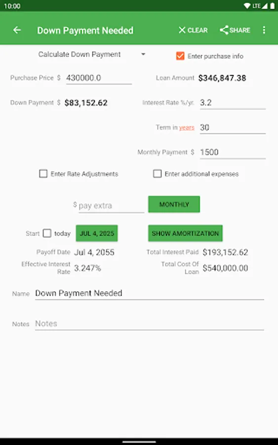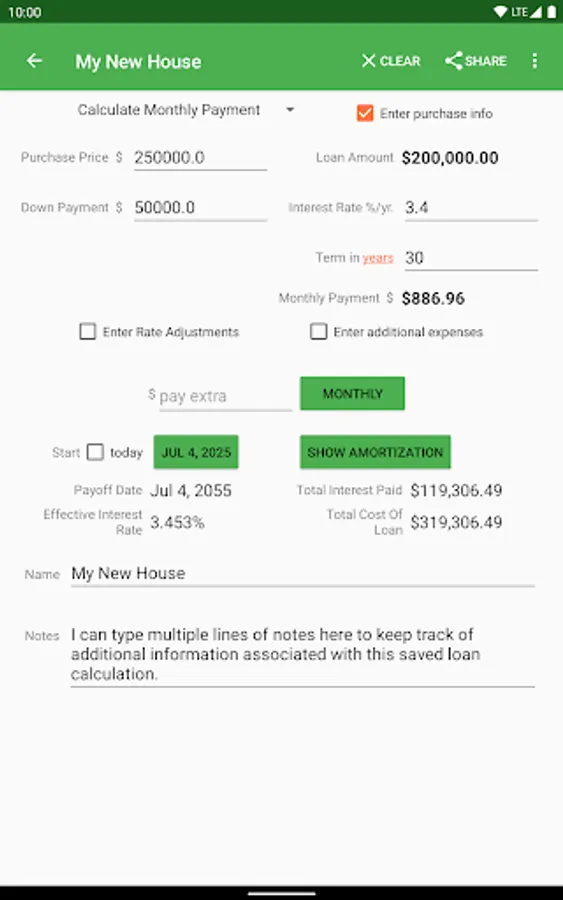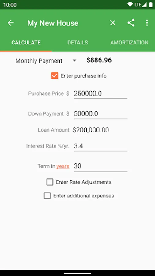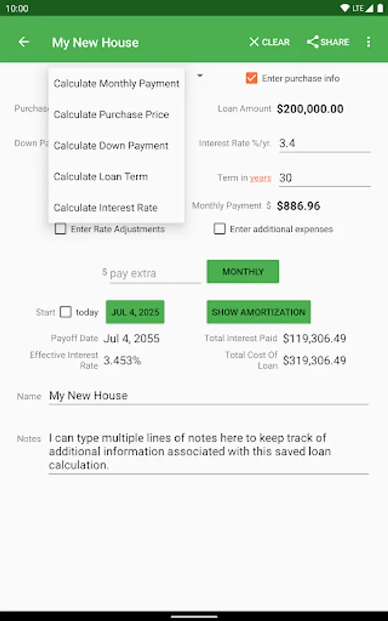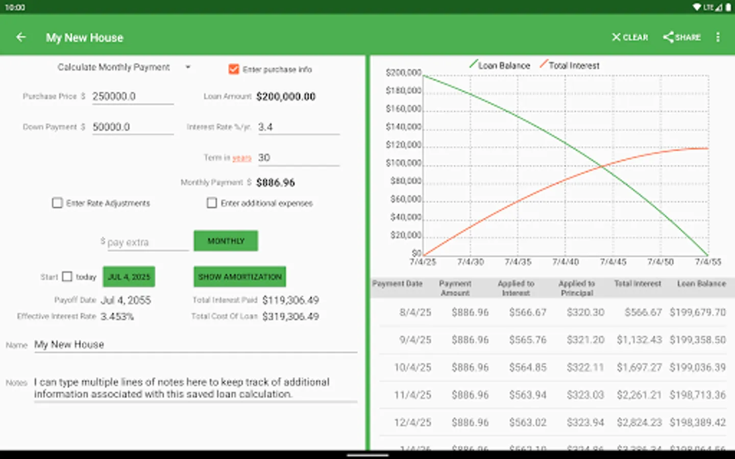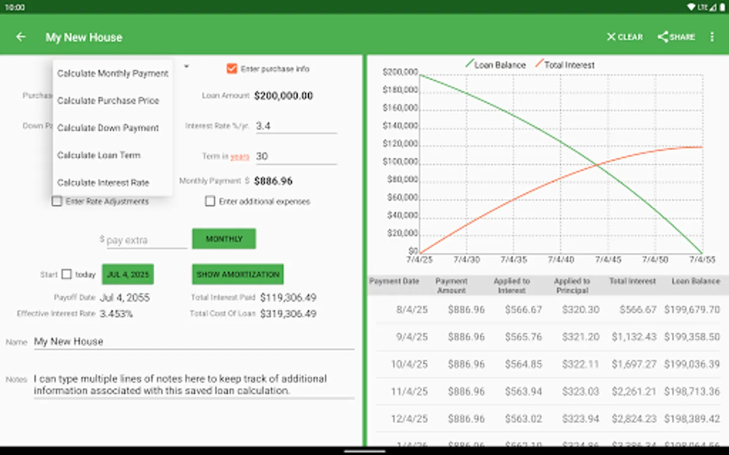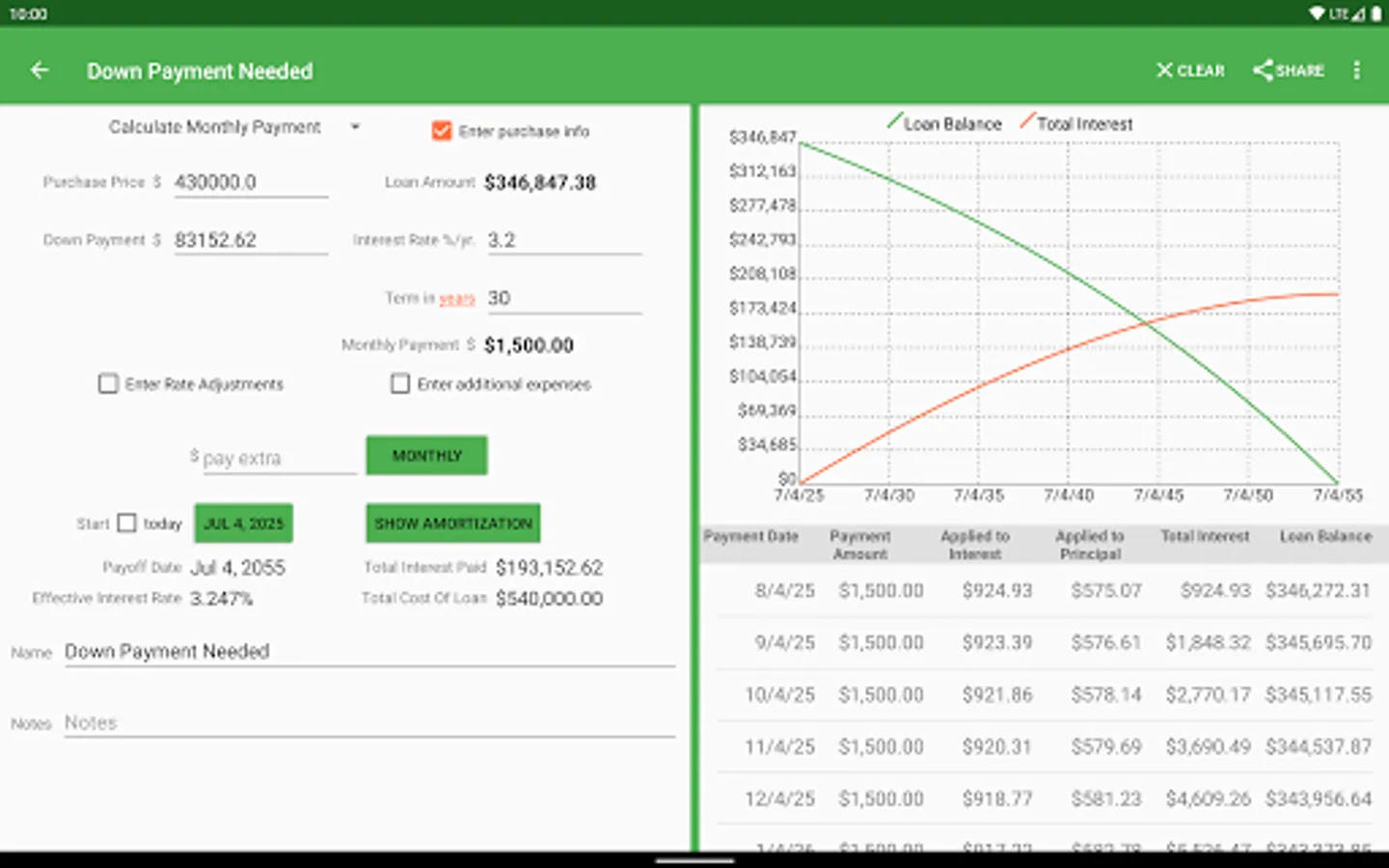 TABLETS AND PHONES: Optimized layouts for different sizes of tablets and phones. See all loan calculation details on one page on tablets. Swipe between logically grouped tabs on phones.