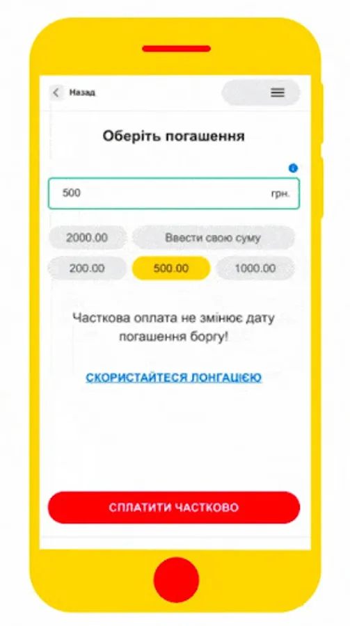 The amount of the loan is from UAH 100 to UAH 12,000 upon first registration and up to UAH 18,000 for regular customers