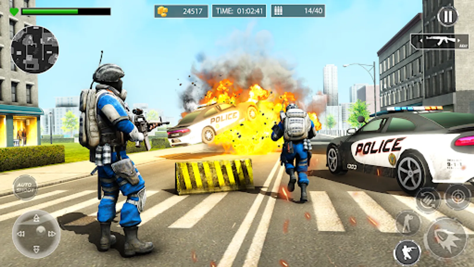 Ride police bikes and fly police helicopters to chase and arrest the gangster mafia. Control the crime in police shooting games 2023 with amazing raiding tactics and police squad strikes.