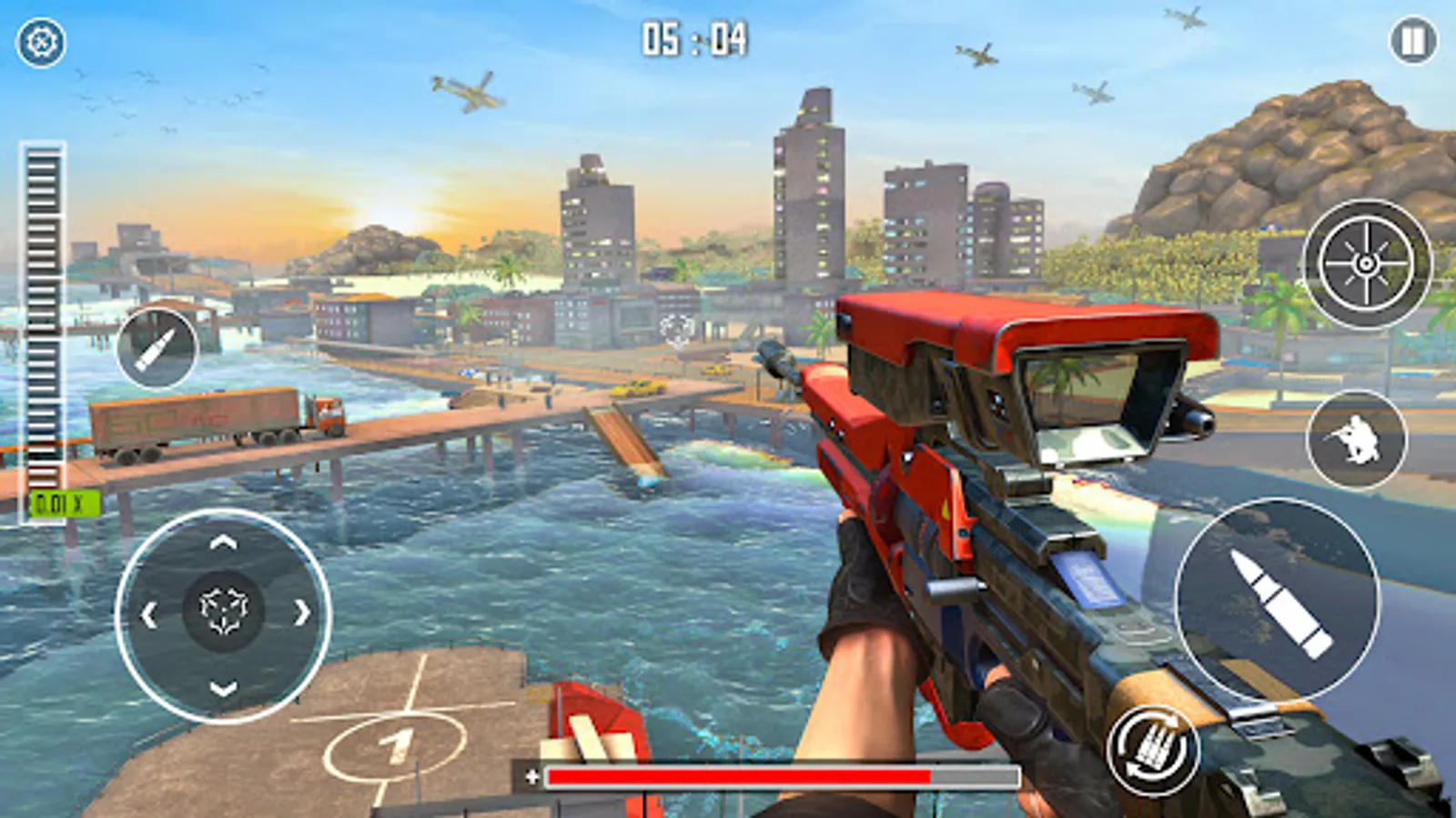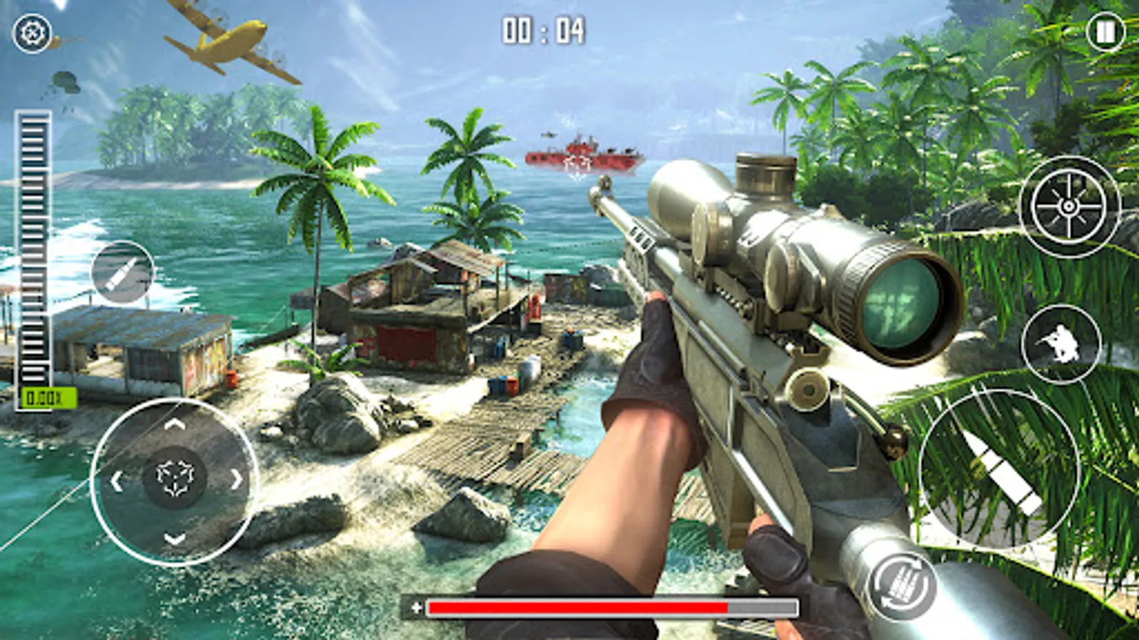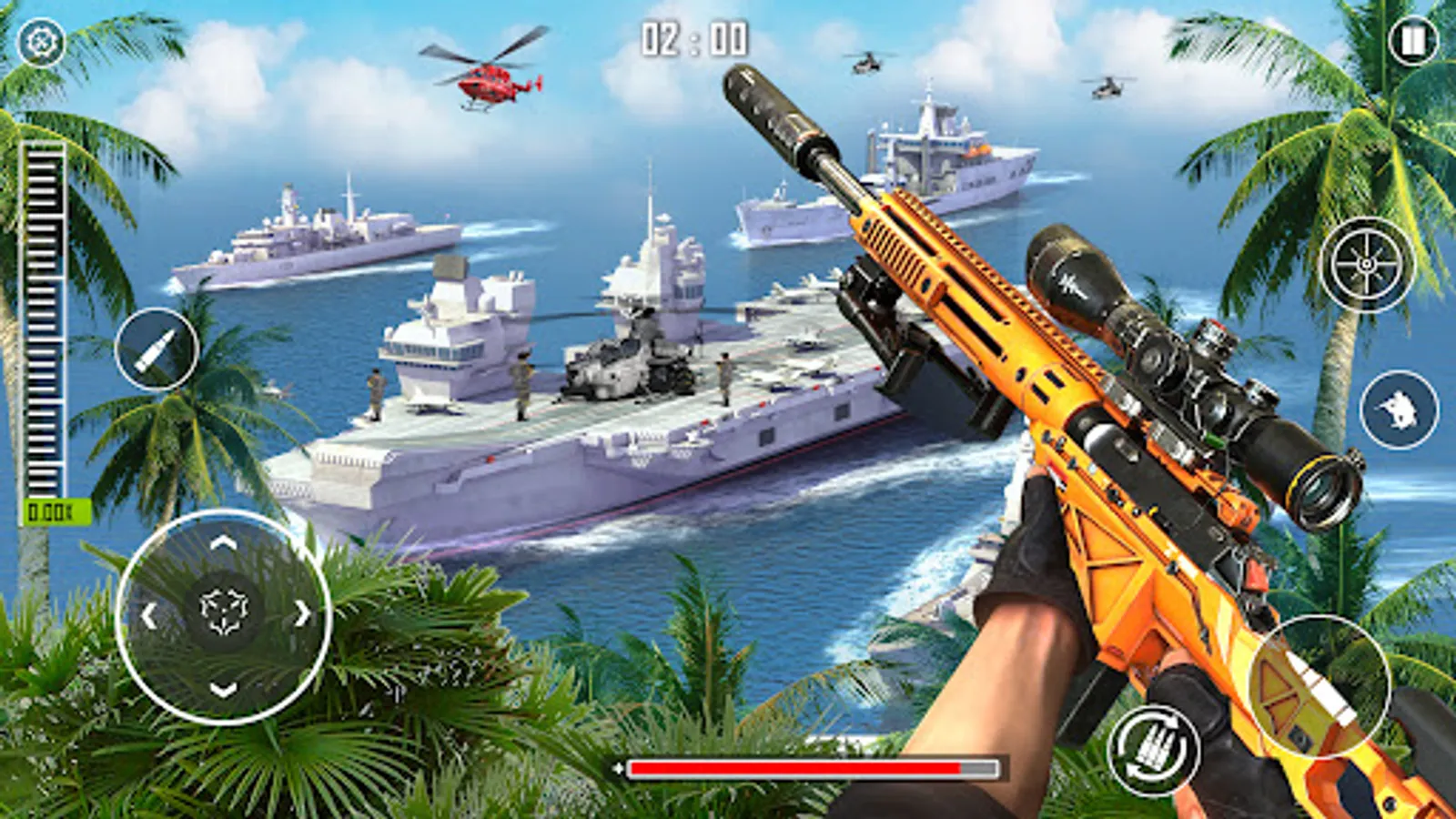 In this AAA sniper shooting cover strike, you can upgrade weapons with accurate target shooting. Enjoy the best gun game simulator ever for sniper 3d fans. Do you want to be declared as the best shooter hero of 2023? Then snipers attack the secret base camp of enemy Special Forces. Be the best sniper shooting agent in this Navy War game. Be on constant alert as silent assassin. Sniper strike war games are not easy to play. Snipe your critical targets and hold your breath before counterattack strikes. This new action shooting game is about the real sniper war on the island. Don’t get captured in an enemy's ambush or trap setups inspired by navy warship games. Armed terrorist heists are there to give you an equal gun fight in the modern sniper shooting arena. Snipe the pirate fleets with your modern sniper guns and use the super zoom feature on your sniper gun games. Pick the best sniper rifles and weapons for naval attacks. Mind blowing warship sniper simulation games 2023. Pirate enemies have high tech guns and weapons as well as Humvee and Heli that will target your army to break the line. Show your military sniper training as the best shooting expert will win the sniper 3D gun shooting simulation games.